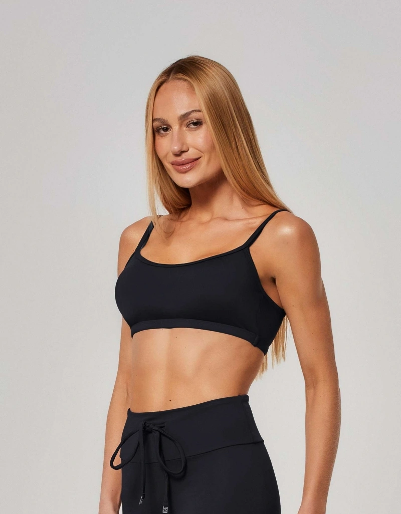 Com decote redondo, alças finas e costas abertas, oferece sustentação na medida certa.